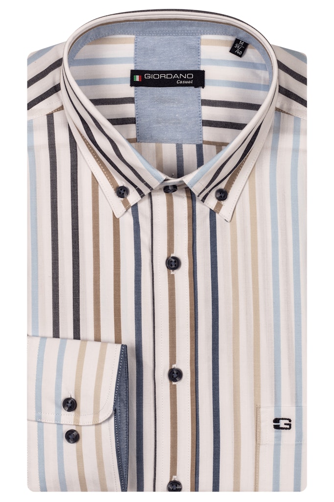Gestreepte overhemd van Giordano met lange mouwen, button-down kraag, knoopsluiting en een opgestikte borstzak. Materiaal: Katoen 100%