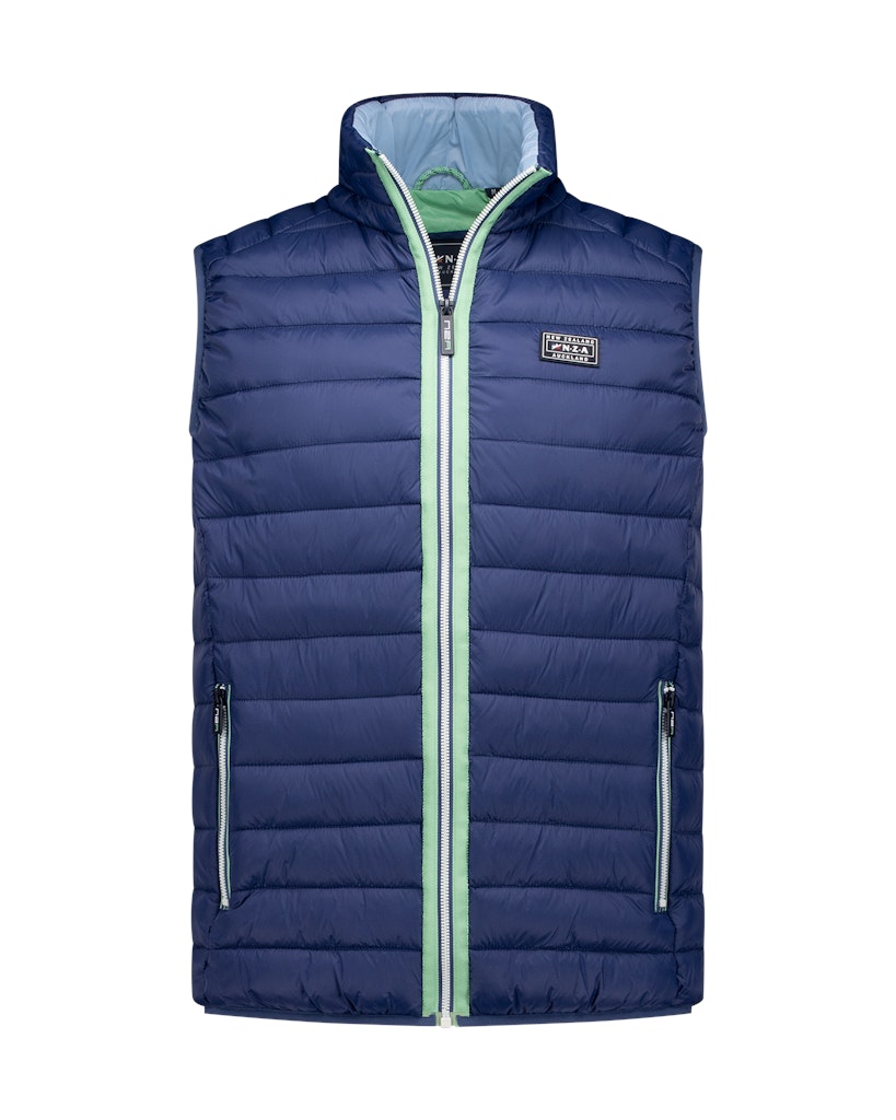 Gewatteerde, doorgestikte bodywarmer van New Zealand Auckland in een waterafstotend en winddicht materiaal met een ritssluiting, opstaande kraag, ritszakken en logo op de linkerborst.