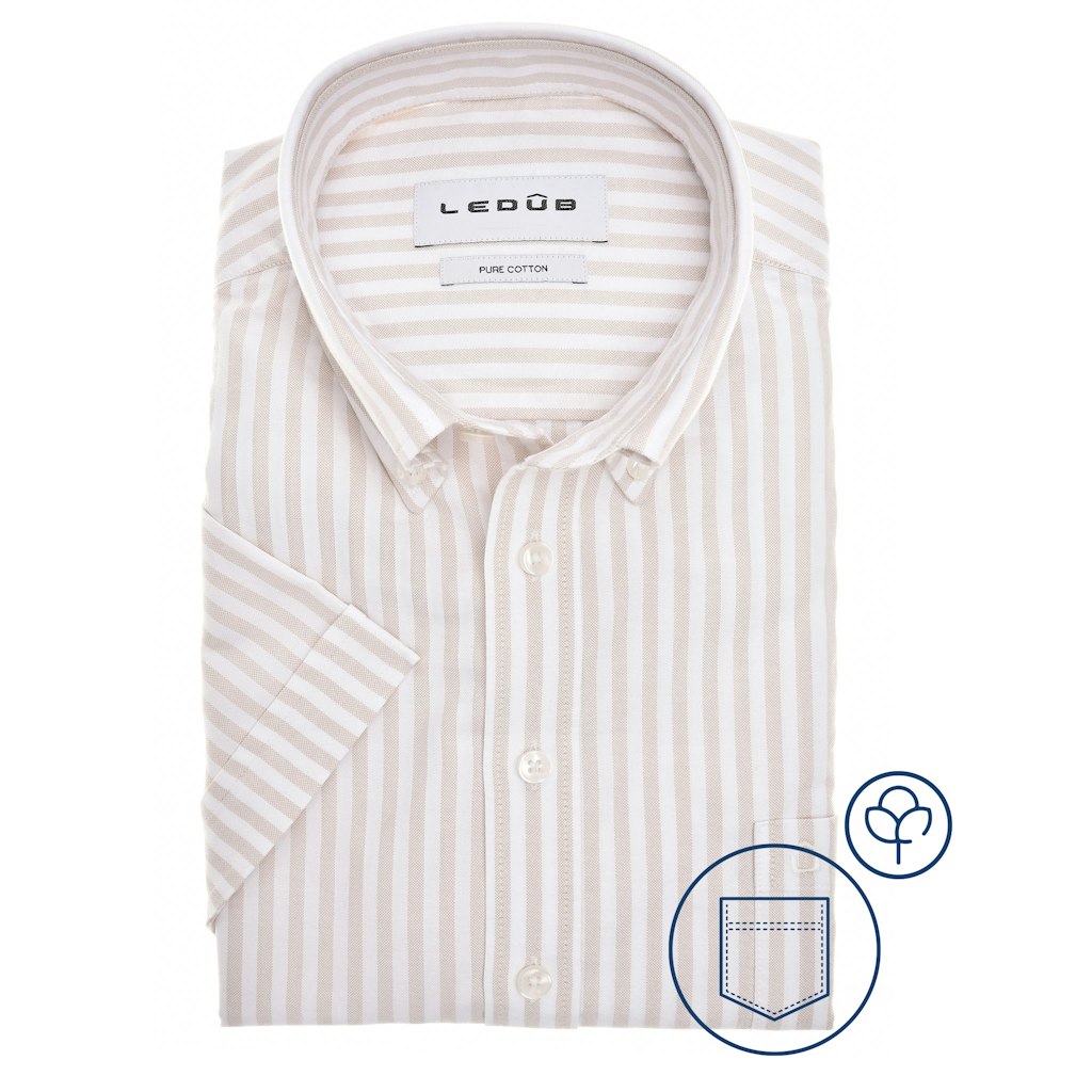 Gestreept overhemd van Ledub met korte mouwen, button-down kraag, knoopsluiting en een opgestikte borstzak. Materiaal: Katoen 100%