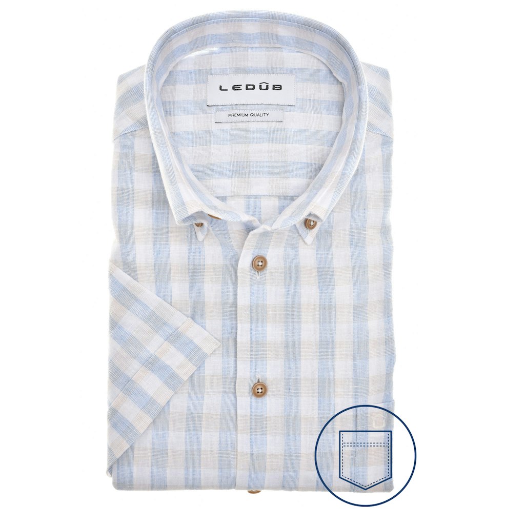 Geruite overhemd van Ledub met korte mouwen, button-down kraag, knoopsluiting en een opgestikte borstzak. Materiaal: Katoen 70%| linnen 30%