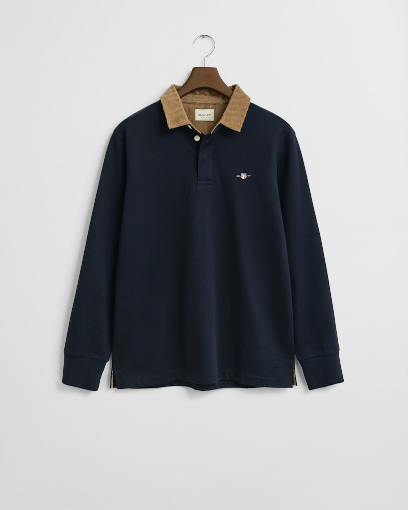 Trui van Gant met lange mouwen, corduroy kraag voorzien van korte knoopsluiting en een geborduurd logo op de linkerborst. Materiaal: Katoen 100%