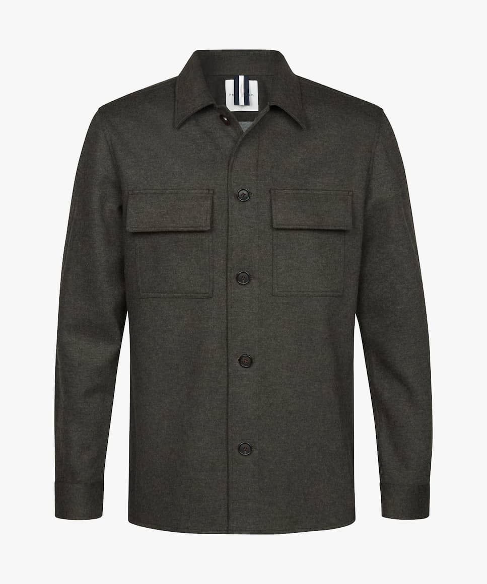 Knitted overshirt van Profuomo in een wol-blend met lange mouwen, kraag, knopsluiting en twee opgestikte klepzakken op de borst.