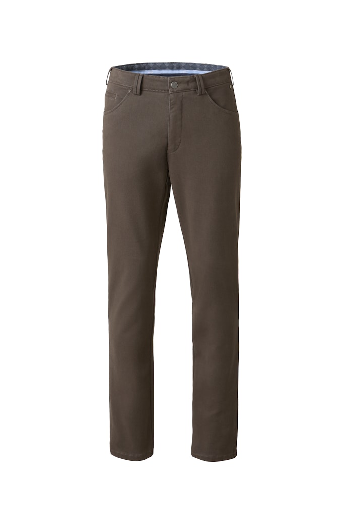 5-pocket broek van Meyer-hosen met een knoop- en ritssluiting en twee paspelzakken aan de achterzijde.