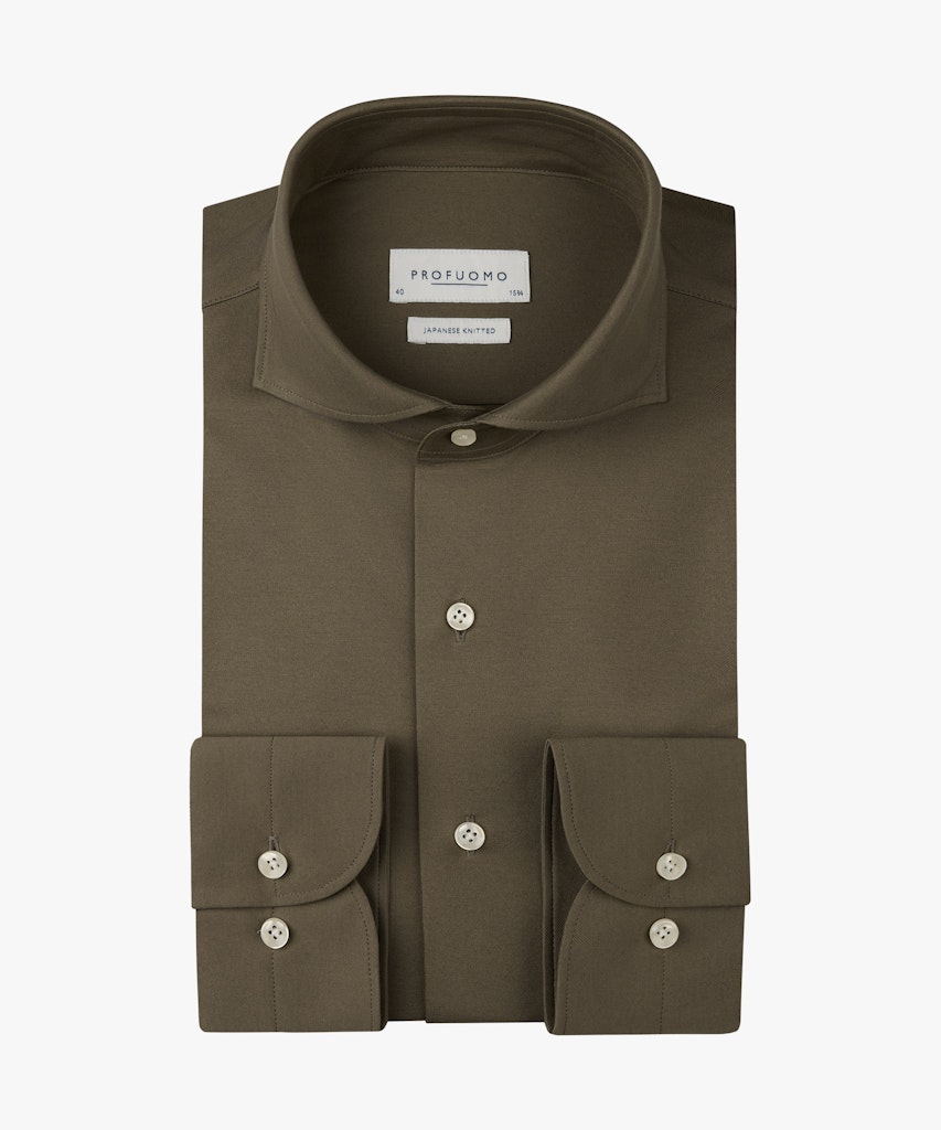 Slim fit overhemd van Profuomo in een Japans knitted kwaliteit met lange mouwen, wide-spread kraag en een knoopsluiting. Materiaal: Katoen 50%| polyester 50%