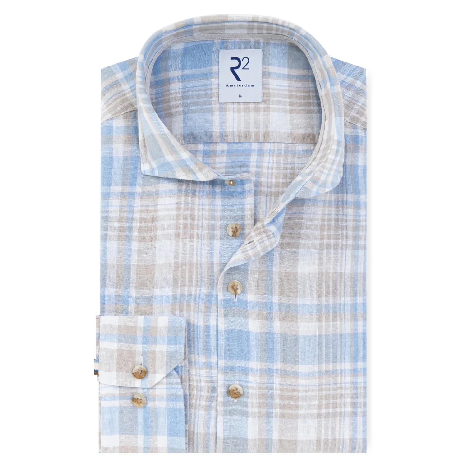 Geruite modern fit overhemd van R2 met lange mouwen, wide-spread kraag en een knoopsluiting. Materiaal: Linnen 76%| katoen 24%