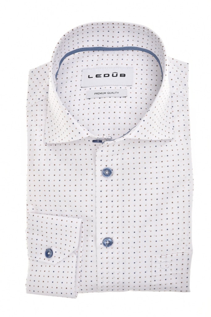 Modern fit overhemd van Ledub in een subtiel dessin met lange mouwen, wide-spread kraag, knoopsluiting en een opgestikte borstzak. Materiaal: Polyester 65%| katoen 35%