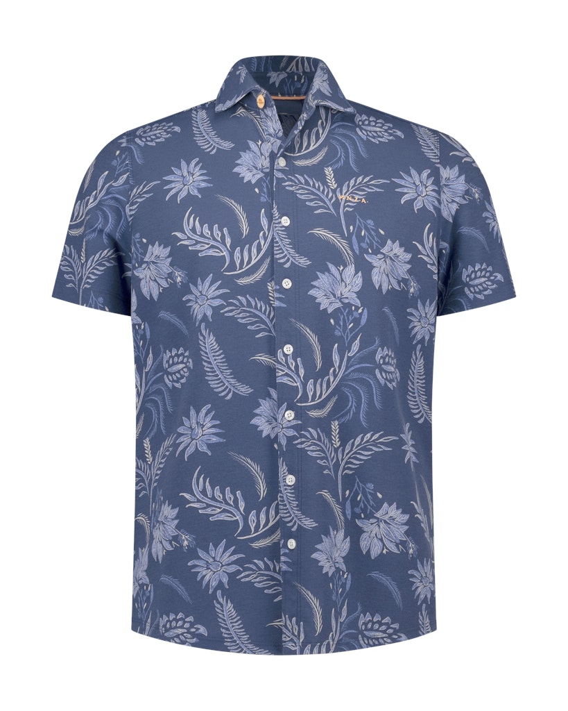 Overhemd van N.Z.A. in een bloemen dessin met korte mouwen, kraag en een knoopsluiting. Materiaal: Katoen 60%| polyester 40%