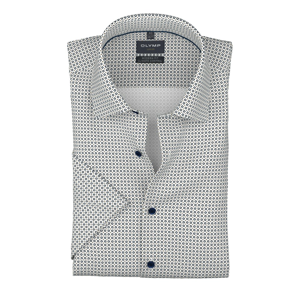Modern fit overhemd van Olymp in een all-over dessin met een kent kraag en een knoopsluiting. Materiaal: Katoen 64%| polyester 27%| elastan 9%